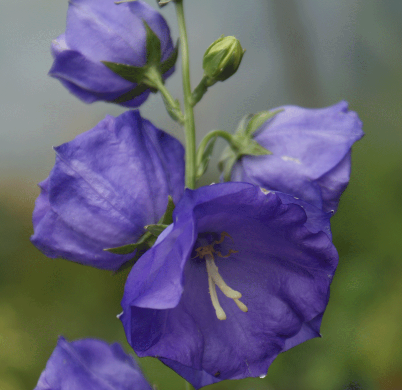 Glockenblume mit sehr großen, halbgefüllten, rundlichen Glocken, vegetativ vermehrt, für durchlässige, sandig-lehmige, relativ nährstoffreiche Böden
