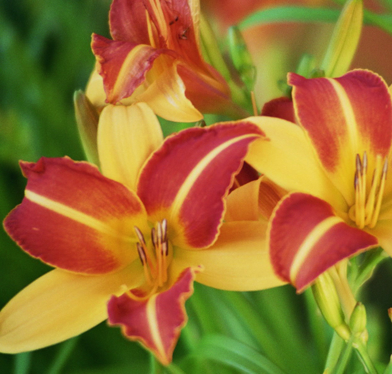 prachtvoll blühende, sehr robuste und langlebige Liliengewächse, die auffälligen, zweifarbigen Blüten eignen sich als eßbare Dekoration, für humose, nährstoffreiche Böden