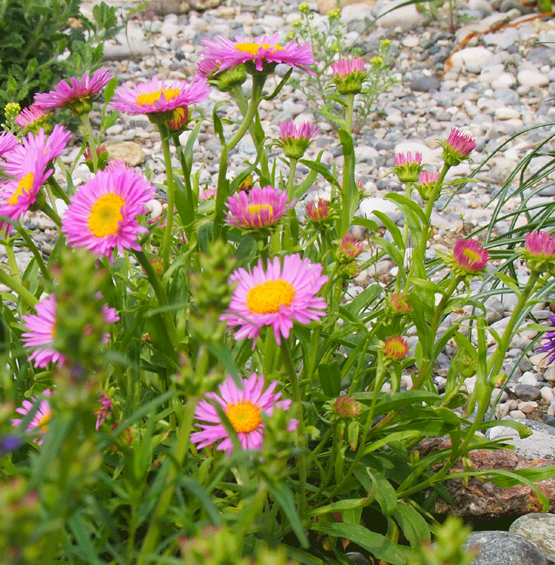niedrige Frühlingsaster mit relativ großen Blüten, für gut durchlässige, eher nährstoffarme Plätze im sonnigen Steingarten, nach 3-4 Jahren teilen und neu aufnehmen