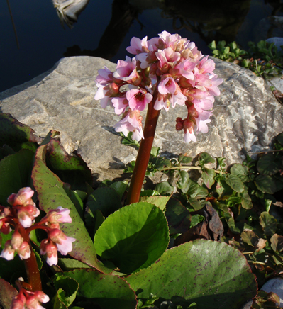 besonders niedrige Sorte der robusten, anspruchslosen Blattschmuckstaude mit ledrigen, wintergrünen Blättern und aufrechten Blüten, welche leider etwas spätfrostgefährdet sind, auch für Kübel geeignet