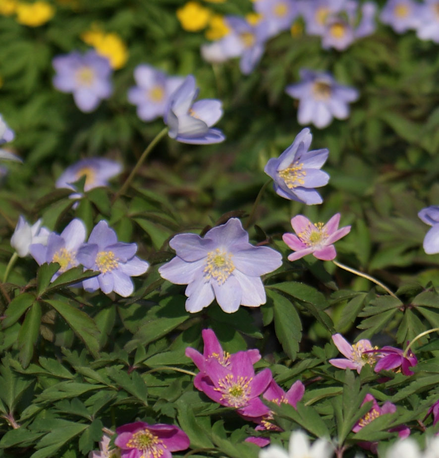 Anemonoides nemorosa Allenii ist eine besonders wüchsige und hohe Sorte des heimischen Buschwindröschens, die hellgraublauen Blüten lassen aber auch das Herz jedes Buschwindröschensammlers höher schlagen, Anemonoides nemorosa Allenii zieht bald nach der Blüte ein, Buschwindröschen wachsen am Besten unter laubabwerfenden Gehölzen auf nahrhaften, humusreichen Standorten