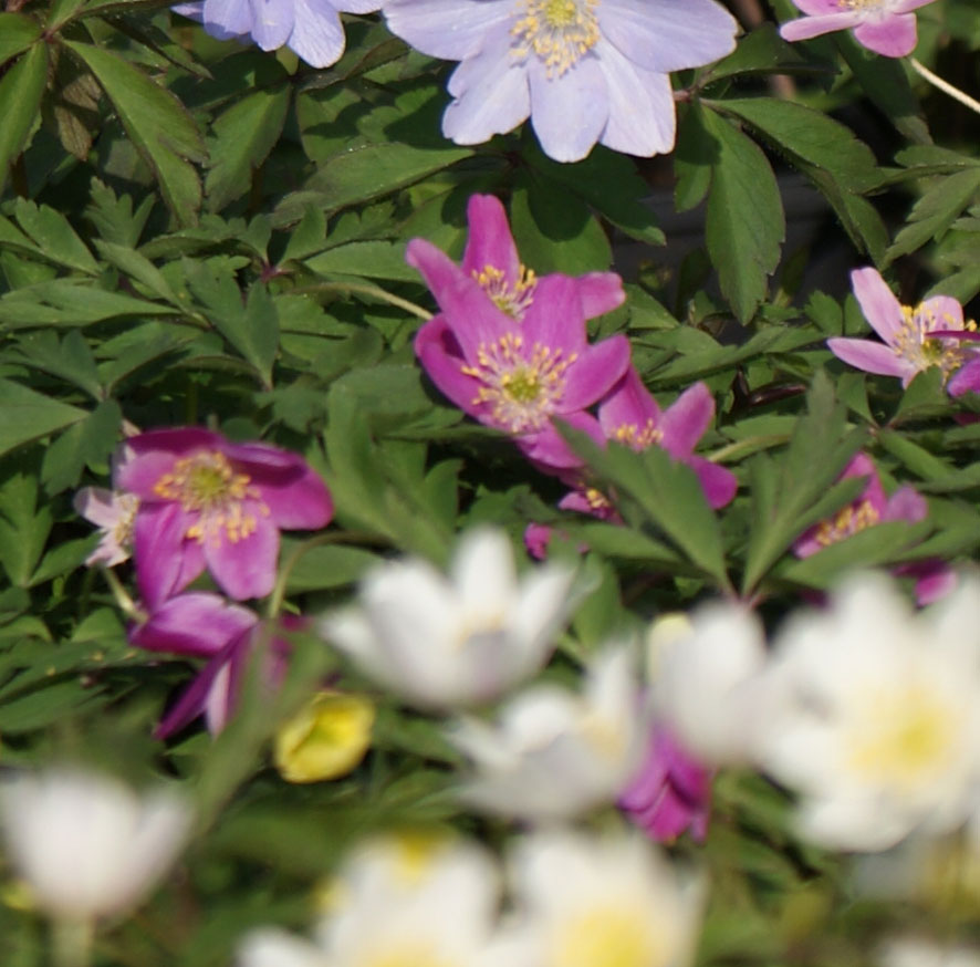 Anemonoides nemorosa Bowles Purple ist eine Sorte des heimischen Buschwindröschens mit violetten Blüten, sie ist ein zarter Frühjahrsblüher und zieht bald nach der Blüte ein, Buschwindröschen wachsen am Besten unter laubabwerfenden Gehölzen auf nahrhaften, humusreichen Standorten