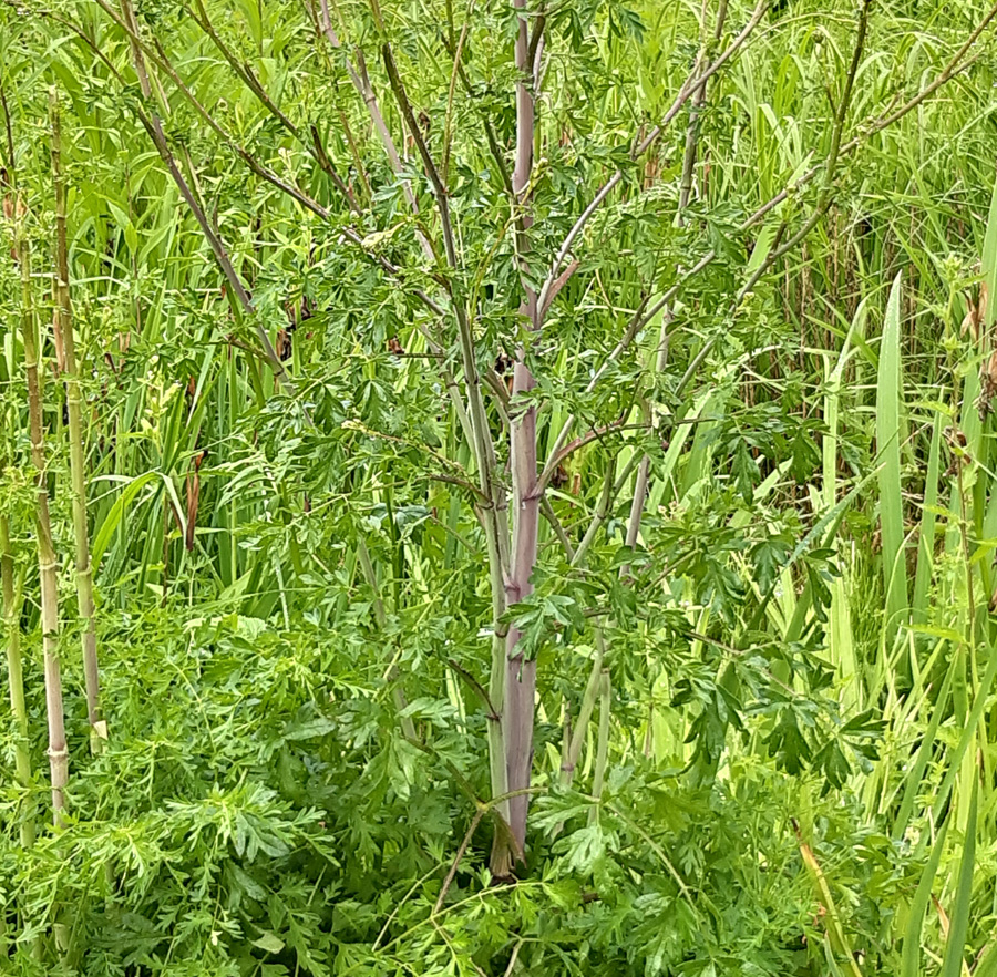 Elsässer Haarstrang / hohe Strukturpflanze mit farnartigem Laub, violetten Stängeln und hübschen Dolden, für durchlässige, kalkreiche Böden in Säumen und Gebüschrändern