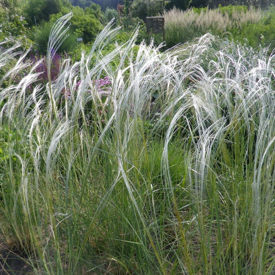 heimisches Steppengras mit langen, hängenden, begrannten Blütenständen, straff aufrecht wachsend