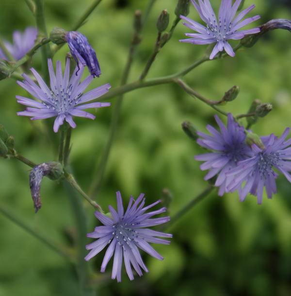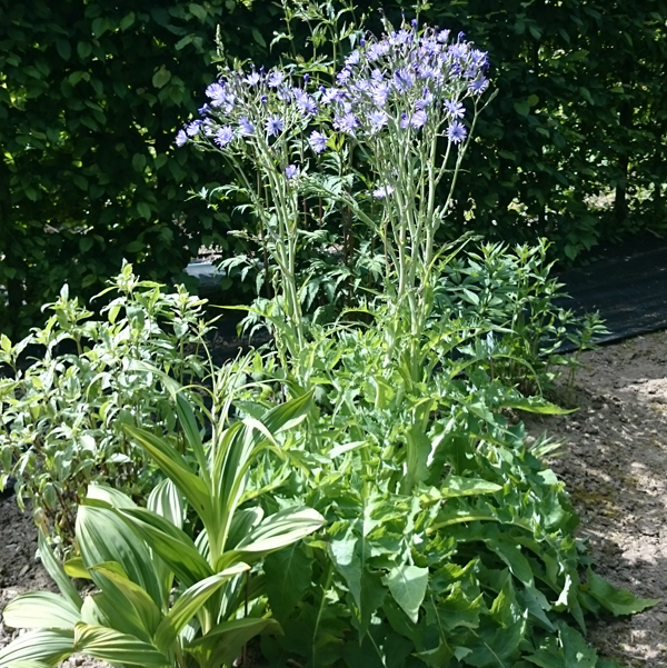 Der Französische Milchlattich ist eine sommergrüne, horstige Staude. Sie erreicht Wuchshöhen zwischen 120 und 150 cm. Ihre hellblauen Blüten erscheinen ab Juli bis September und sind bei Insekten sehr beliebt. Die heimische Pflanze mag es sonnig bis halbschattig auf frischen bis feuchten Böden. Sie kommt in den Alpen vor. Verwandt ist die Pflanze mit der Wegwarte oder unserem Cichorien-Salat. Daher wird Cicerbita plumeri auch als Gemüse verwendet. Der Blütenstand erscheint in rispigen Dolden, die Samenstände gleichen kleinen Pusteblumen.