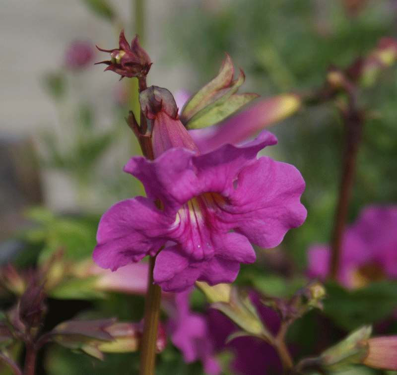 selten angebotene Staude mit sehr auffälligen, trompetenförmigen Blüten, zieht im Spätsommer ein, Blätter grob gelappt, für gut durchlässige, mäßig nährstoffreiche Böden
