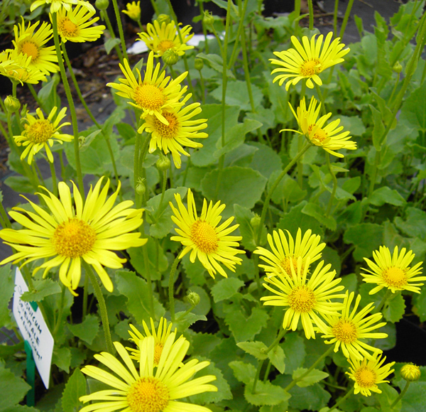 Dieser horstig wachsende Frühjahrsblüher zeigt seine strahlenförmigen, gelben Blüten schon ab April bis Mai. Die Gämswurz ist für sandig, durchlässige Böden in der Sonne und im Halbschatten. Ein Rückschnitt nach der Blüte fördert die Vitalität. Die großblumige Sorte Magnificum ist sehr reichblühend und durch die frühe Blüte auch eine tolle Bienen- bzw. Insektennahrung. Auch bestens zum Schnitt geeignet. Meist zieht die Gemswurz im Sommer ein. Neben Tulpen, dem Tränenden Herz (Dicentra) oder dem Kaukasus-Vergissmeinicht (Brunnera) kommt Doronicum orientale Magnificum (Gemswurz) sehr gut zur Geltung.
