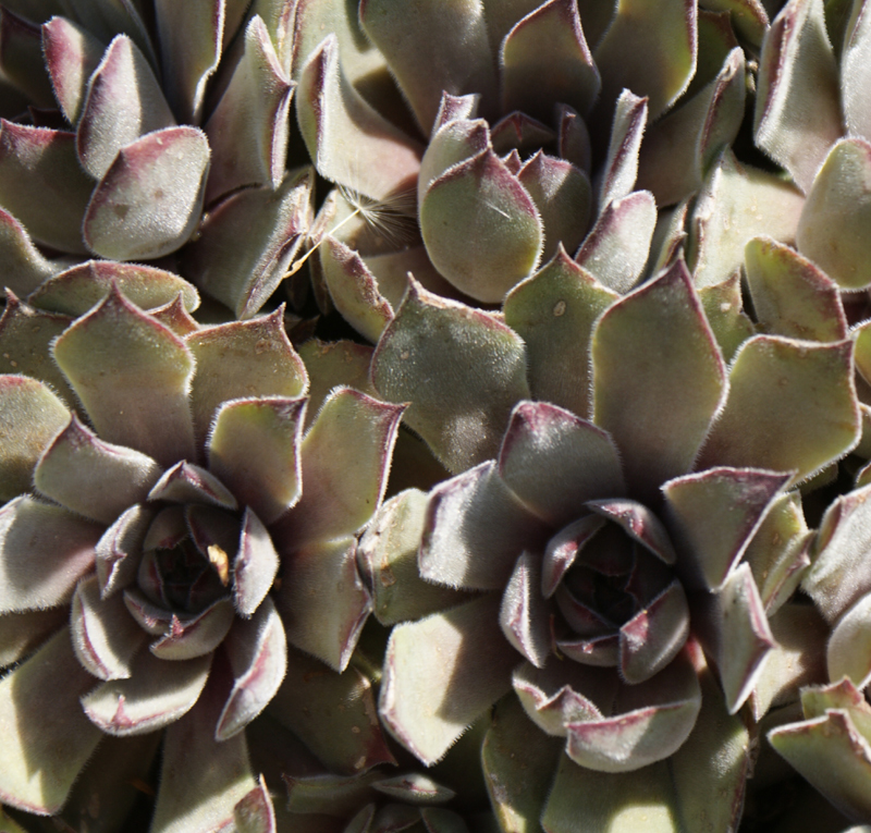 mittelgroß, samtig behaarte Rosetten, bläulich violett getönt, für trockene, magere Böden, wunderschön auch in Gefäßen