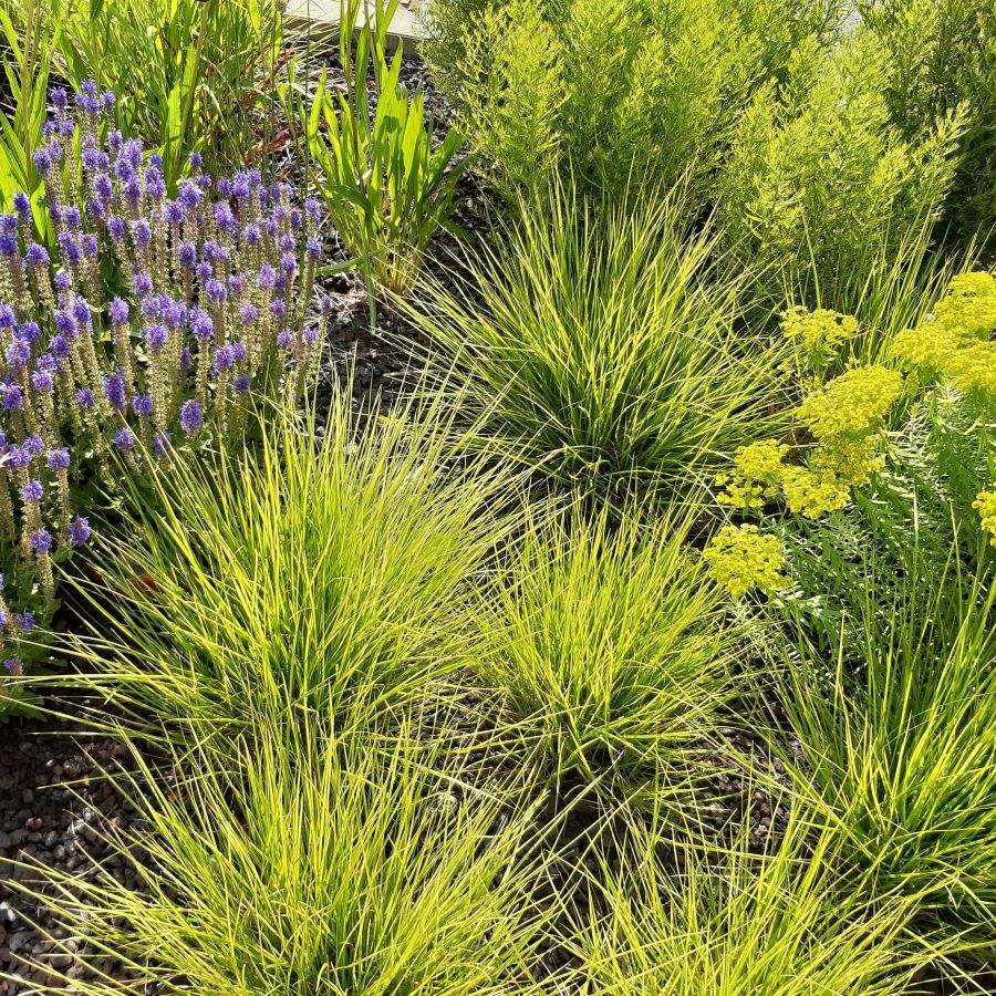 Heimisches Gras mit sehr späten silbrig-weißen Blüten, frischgrünes, immergrünes Laub und horstiger Wuchs, verträgt auch Trockenheit und Wurzeldruck, für eher kalkhaltige Böden.