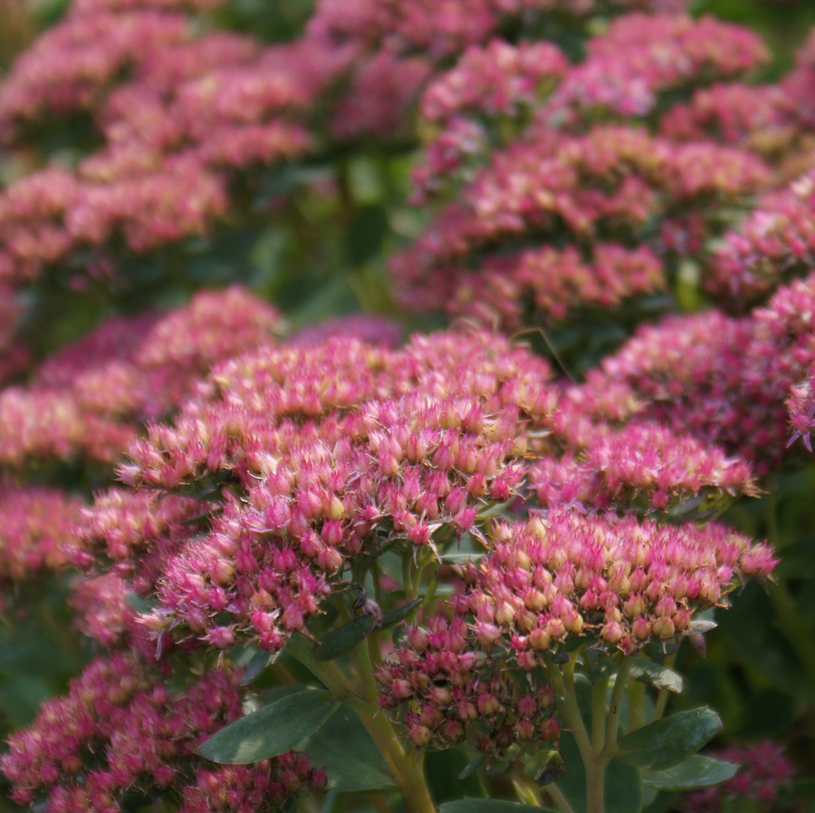 Kompakt und buschig wachsend hat diese Sorte ein eher kugeliges Erscheinungsbild. Die leicht bläulichen Blätter harmonieren gut mit den rosa Blütendolden, Blütenstände auch im Winter noch sehr zierend, Insektenmagnet, für durchlässige, eher nährstoffarme Böden, sehr beliebt bei allen möglichen Insekten