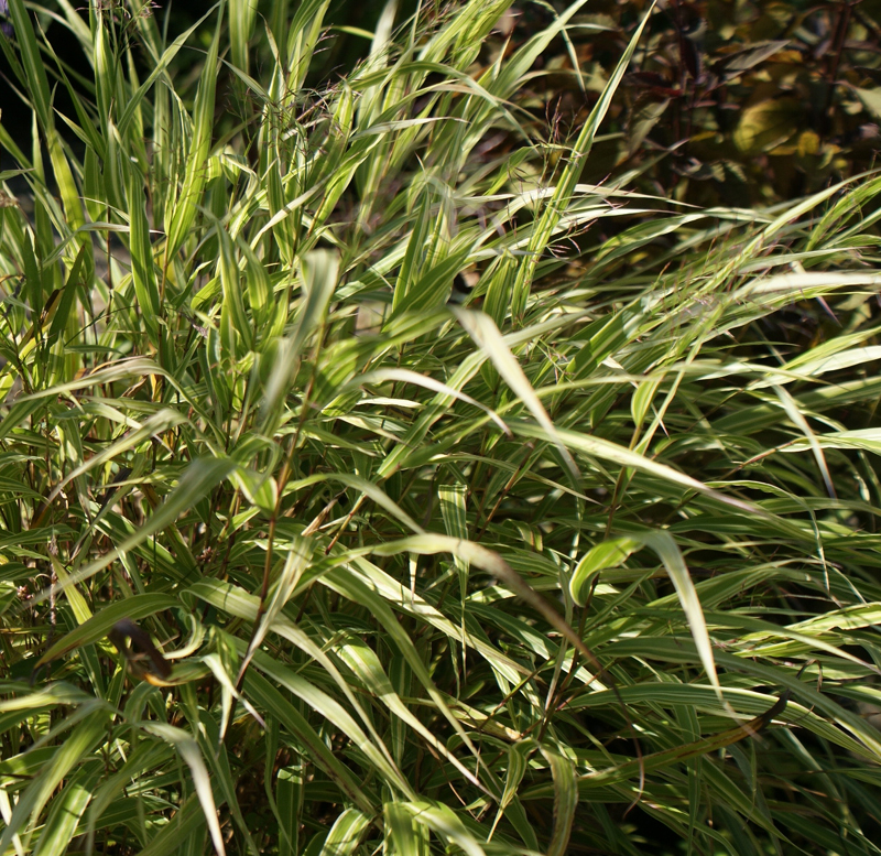 sehr attraktive große Blatthorste aus deutlich-gelblich-weiß gestreiften Blättern, weich überhängender Wuchs, später Austrieb, Frühjahrspflanzung empfohlen, leichter Winterschutz ratsam, für locker-humose, frische, nährstoffreiche Böden