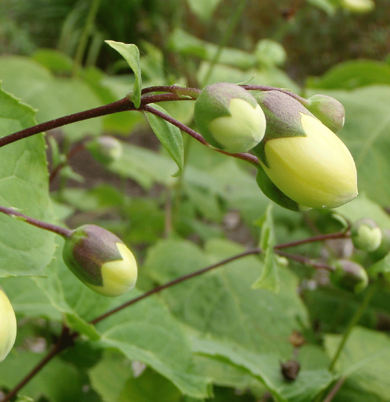 Wertvolle, spät blühende Schattenstaude mit buschigem Wuchs und großen, wachsartigen Glockenblüten, dunkelrote Stiele, für locker-humose, nährstoffreiche Böden