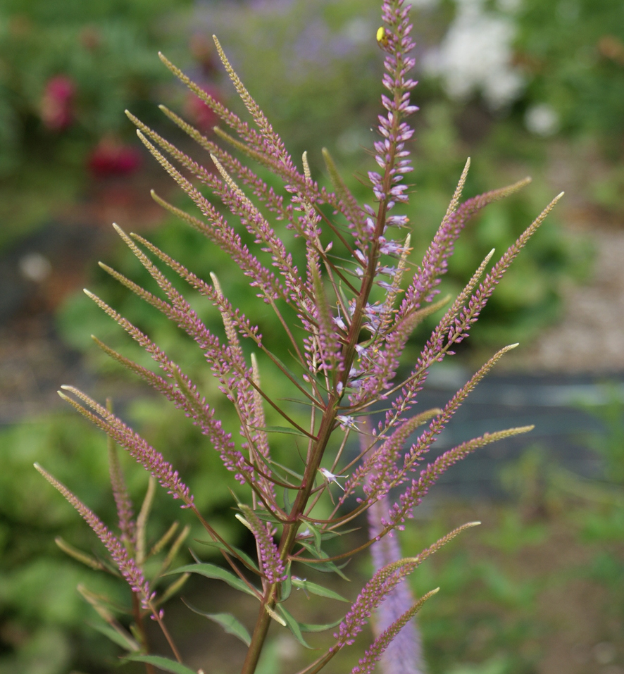 Veronicastrum virginicum Adoration ist eine neuere Sorte von Piet Oudolf mit dunklen Stängeln, die ähnlich der Sorte Fascination ist. Durch eine bessere Standfestigkeit bleiben die verblühten Rispen meist noch bis tief in den Winter hinein erhalten. Kandelaber-Ehrenpreis sind gute Strukturpflanzen und Insektenmagneten und brauchen einen frischen, nährstoffreichen Boden.