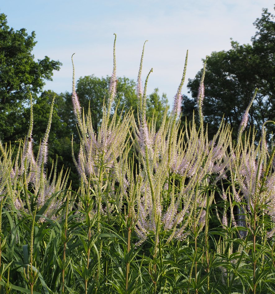 Lavendelturm ist die höchste Sorte des Kandelaber-Ehrenpreises (ausgelesen von Ernst Pagels, 1998). Sie fällt durch besonders reich verzweigte Blütenstände in tollem Hellblau auf. Durch die Höhe und den straffen Wuchs ist Veronicastrum Lavendelturm eine super Hintergrundpflanze fürs ganze Jahr.