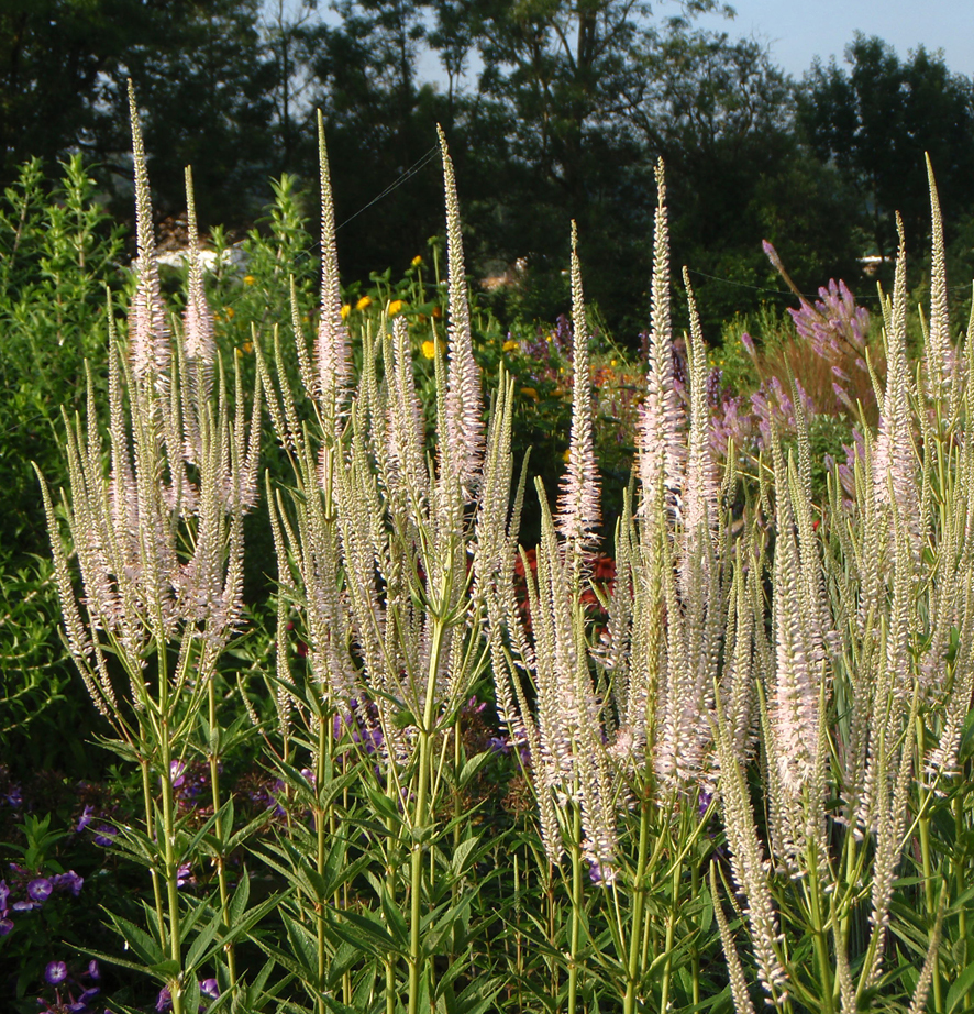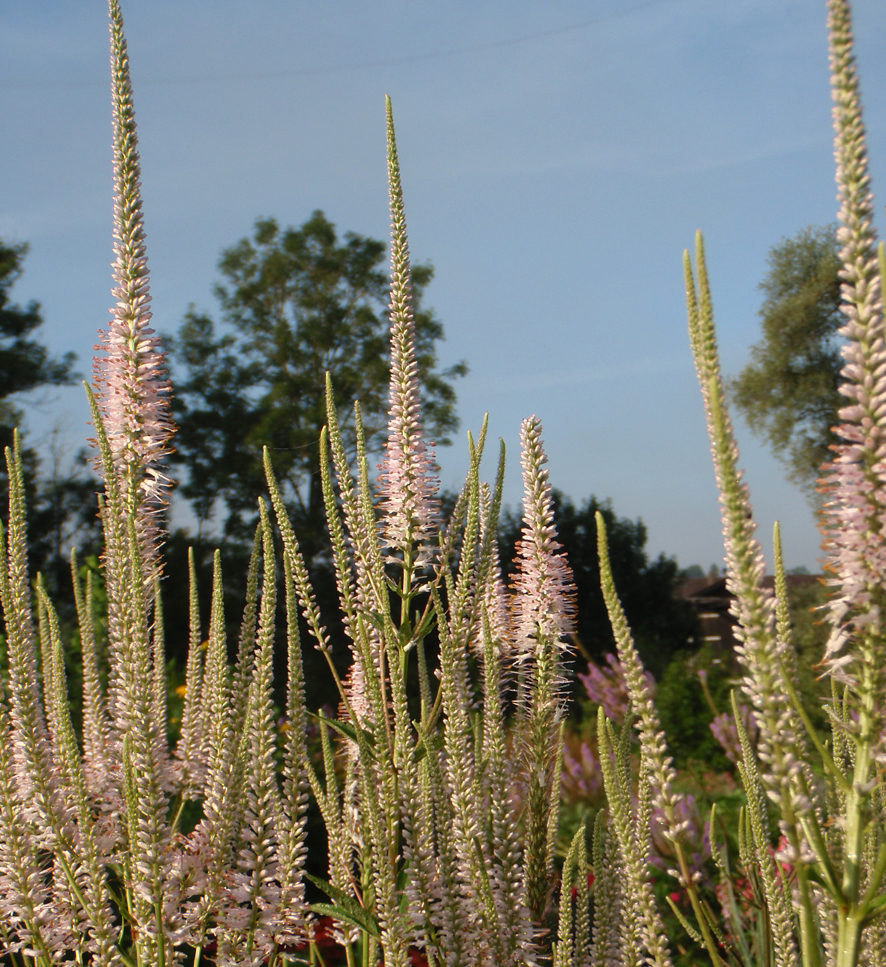 Veronicastrum virginicum Pink Glow ist eine hellrosa blühende, eher kompakt wachsende Sorte. Alle Kandelaber-Ehrenpreis sind insektenfreundliche Pflanzen und während der Blütezeit voll mit Bienen , sie mögen einen frischen, nährstoffreichen Boden.