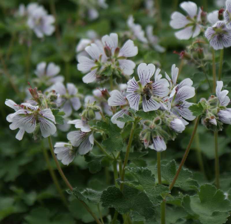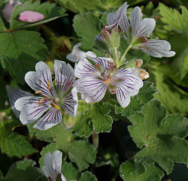 Kaukasus-Storchschnabel / sehr dekorative, wintergrüne, leicht genoppte Blätter, horstig wachsend, sehr langlebig und gesund, für schottrige, mäßig nährstoffreiche Böden