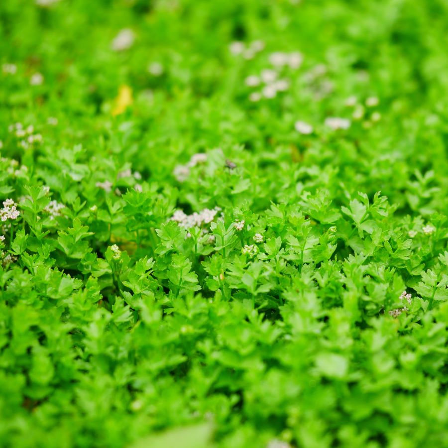 Kriechender Eppisch / selten gewordene heimische Sumpfpflanze mit feinem Petersilienaroma, braucht offenen Boden, da sehr konkurrenzschwach, im Garten auf frischen bis feuchten, nährstoffreichen Böden