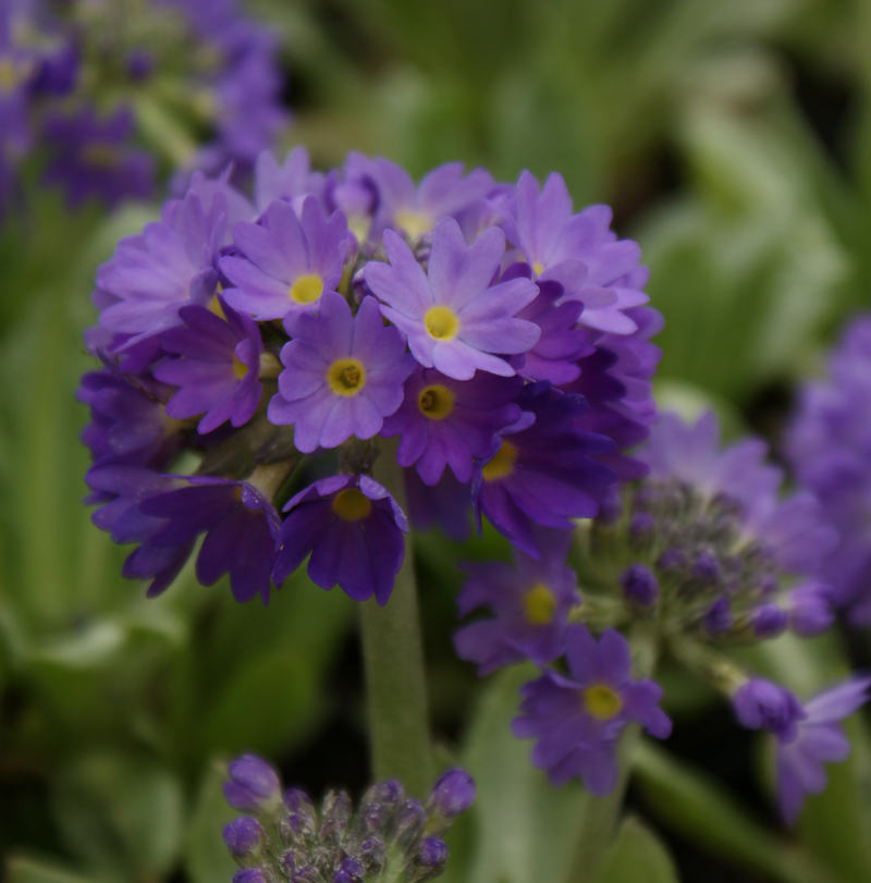 eher violette als blaue, große Kugelblüten, sehr anpassungsfähiger Frühjahrsblüher für frische, lehmig-humose Böden