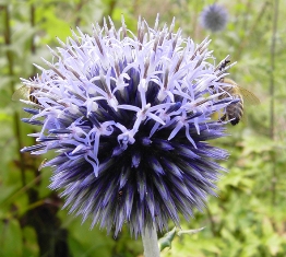 Echinops ritro sind robuste, distelartige Stauden mit kugeligen Blütenköpfen, sehr beliebt bei Bienen, besonders schön sind auch die verblühten Samenstände der Kugeldistel im Winter, für durchlässige, mäßig nährstoffreiche Böden.