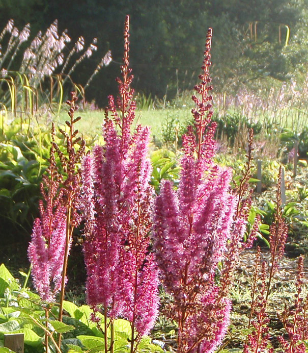 verträgt von allen Astilben die meiste Trockenheit, sehr stattliche, standfeste Art, horstig und straff aufrecht wachsend, mit der Zeit stattliche Horste