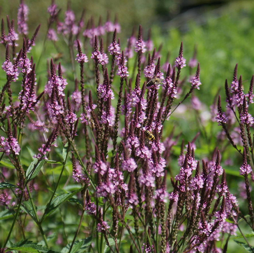 Pink Spires ist eine sehr variable rosa Form der Wildart aus Nordamerika. Der Standort für Verbena hastata sollte nicht zu trocken sein. Das Lanzen-Eisenkraut ist ein Insektenmagnet während der langen Blütezeit und auch nach der Blüte als Strukturpflanze noch sehr wertvoll.