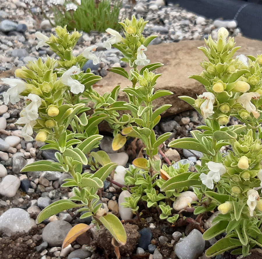 Der marokkanische Darchenkopf kommt aus den Bergen Marokkos und fühlt sich hierzulande im Steingarten auf trockenen, kalkreichen, mageren Böden in voller Sonne wohl. Seine cremeweißen Blüten zeigt er im Juni bis Juli und lockt mit seinen Lippenblüten zahlreiche Besucher an, die dort Nektar tanken. Mit seinen silbergrauen Blättern ist er auch im Winter zu sehen und wird als kleiner Busch ca. 25 cm hoch.
