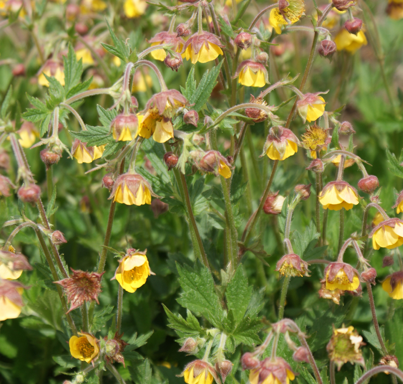 eine Art gelb blühendes Geum rivale, schöne Fernwirkung, für frische, locker-humose Böden, sehr anpassungsfähig und robust