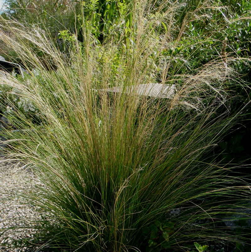 Nasella tenuissima, auch bekannt unter Stipa tenuissima ist ein filigranes Gras mit haarfeinen Grannen, attraktiv bis in den Herbst, nicht zuverlässig winterhart aber reichlich Selbstaussaat, für durchlässige, trockene und magere Standorte