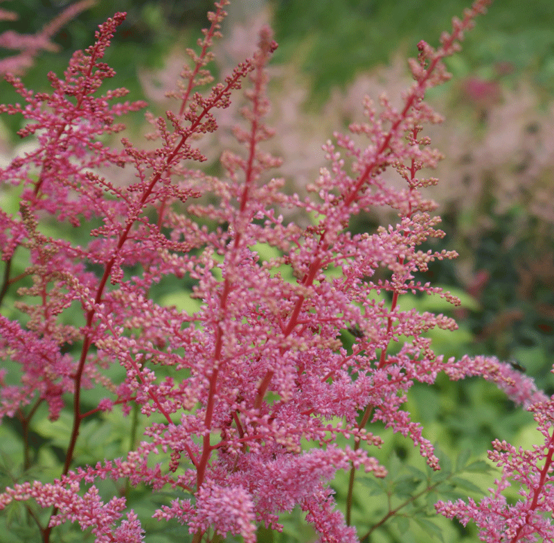 wertvolle, dekorative Schattenstauden mit gefiederten, sehr attraktiven Blättern und fedrigen Blütenkerzen, besonders schön bei flächiger Pflanzung, braucht frischen, nährstoffreichen Boden