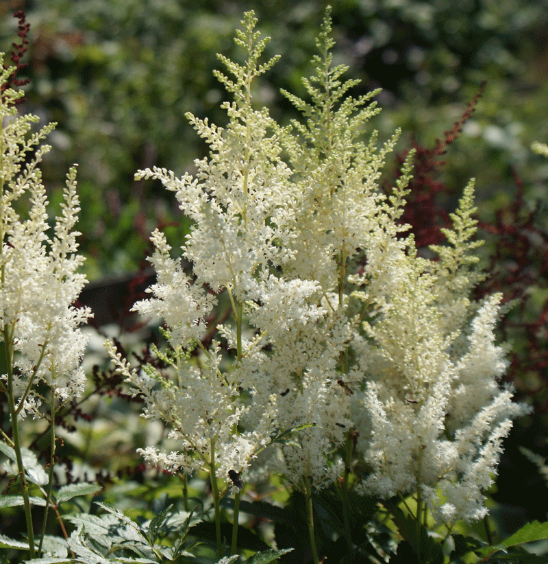 wertvolle, dekorative Schattenstauden mit gefiederten, sehr attraktiven Blättern und fedrigen Blütenkerzen, besonders schön bei flächiger Pflanzung, braucht frischen, nährstoffreichen Boden