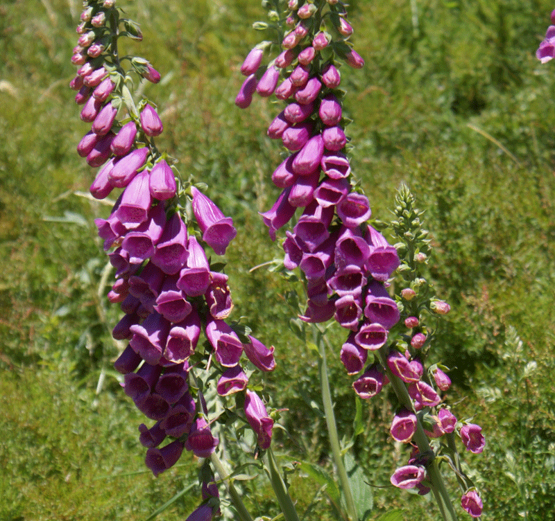 Purpur-Fingerhut / heimische Wildstaude, zweijährig, aber gut versamend, große Blüten, für durchlässige, humose, eher kalkarme Böden in sonnigen bis halbschattigen Bereichen, schön an sonnigen Gehölzrändern, beliebt bei Hummeln, sehr stark giftig!