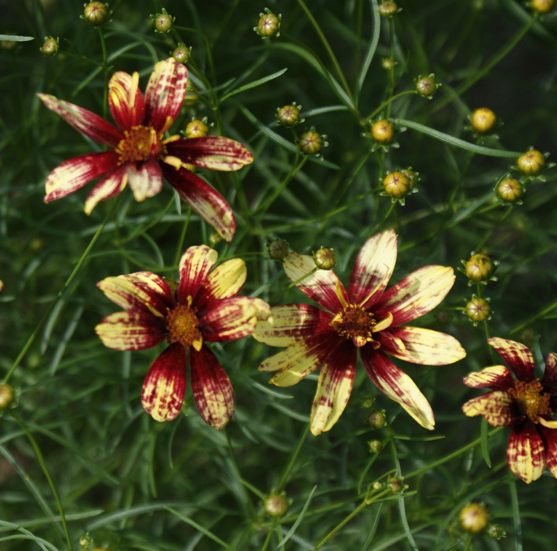 wunderschönes feines Laub und eine zweifarbige Blüte in warmen gelb und Rottönen, bleibt horstig, für durchlässige, locker-humose bis lehmige, relativ nährstoffreiche Böden