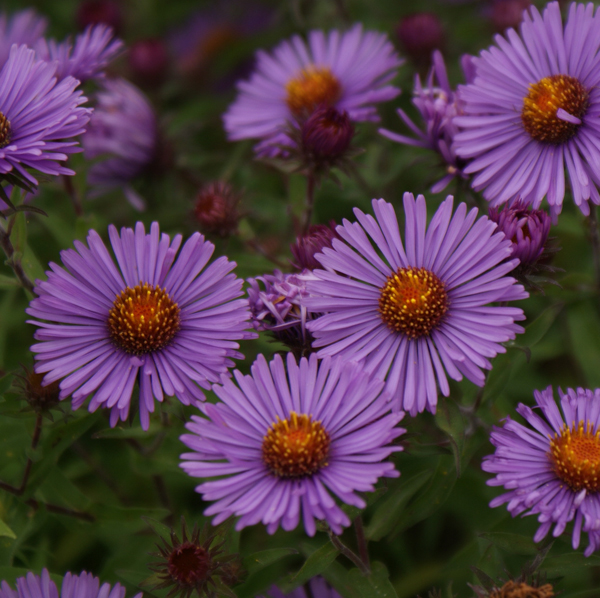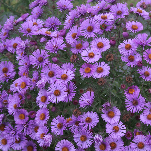 Ein sehr edler Farbton schmückt die zahlreichen Blüten von Symphyotrichum novae-angliae Herbstflieder.