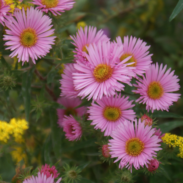 Besonders große Blüten in hellem Puderrosa zeichnen die Sorte Aster novae-angliae Rosa Sieger aus.