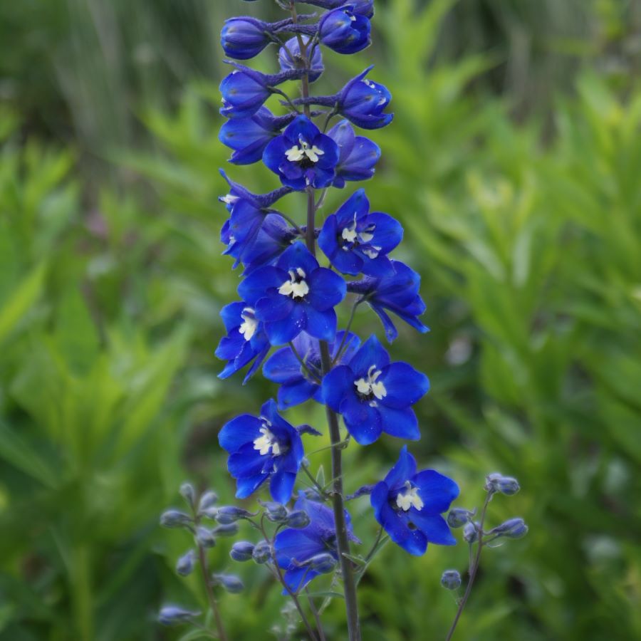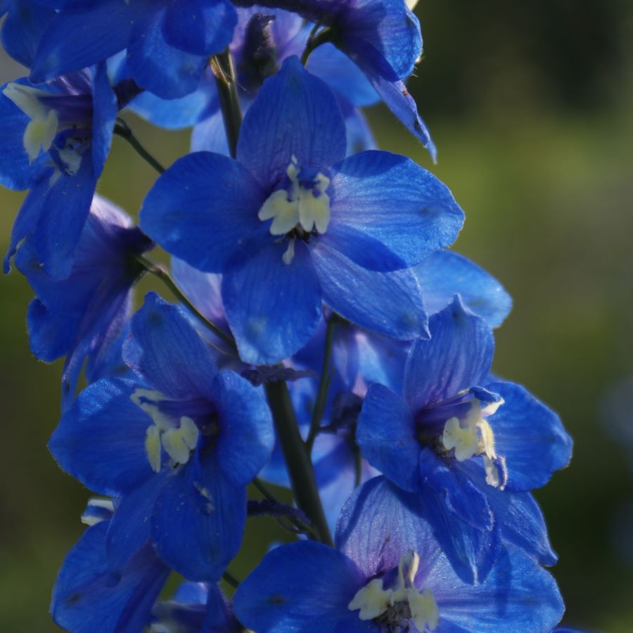 Lanzenträger blüht in leuchtenden Enzianblau mit weißem Auge. Die Elatum- Hybriden haben besonders dicht besetzte, großblütige Blütenkerzen, sie brauchen auf jeden Fall eine Stütze, nach Rückschnitt knapp über dem Boden erscheint meist eine Nachblüte, Austrieb vor Schnecken schützen, für lehmig-humose, sehr nährstoffreiche Böden, eine ausgeglichene Bodenfeuchte ist wichtig, giftig