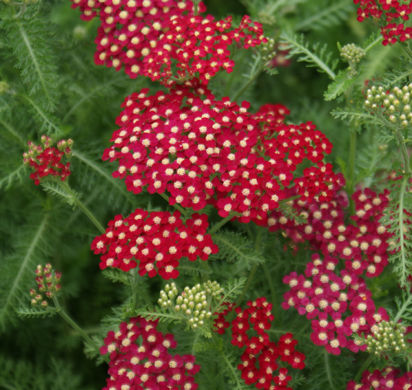 Die Schafgarbe Petra (Achillea millefolium Petra) überzeugt mit Blüten wie schimmernder, dunkelroter Samt; Sie ist eine kompakte, standfeste Sorte, die ihre Farbe lange hält. Achillea millefolium Petra bildet kurze Ausläufer und sollte alle 2-3 Jahre geteilt und neu gepflanzt werden.