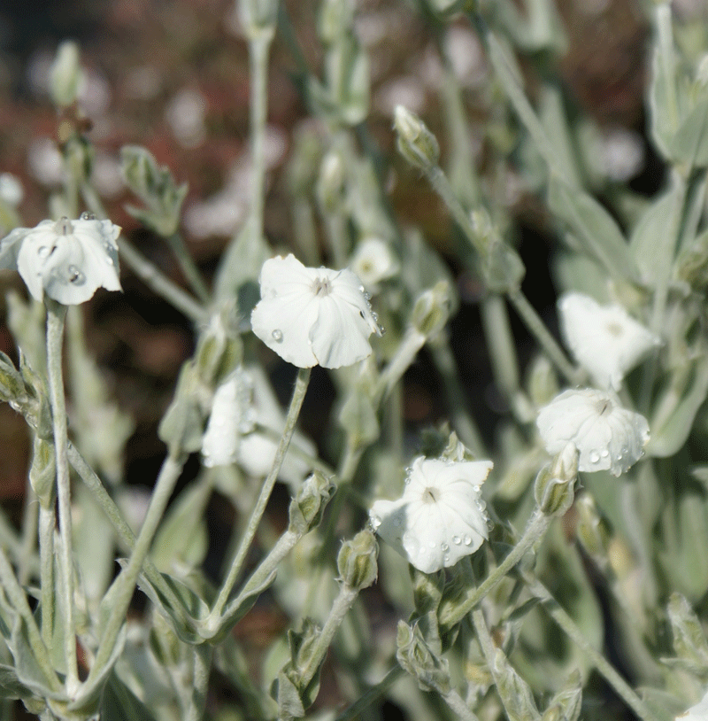 weiße Form der Vexiernelke, sehr edel zu kombinieren, kurzlebig, aber gut versamend, sehr anpassungsfähig, jedoch nicht zu nasser Boden