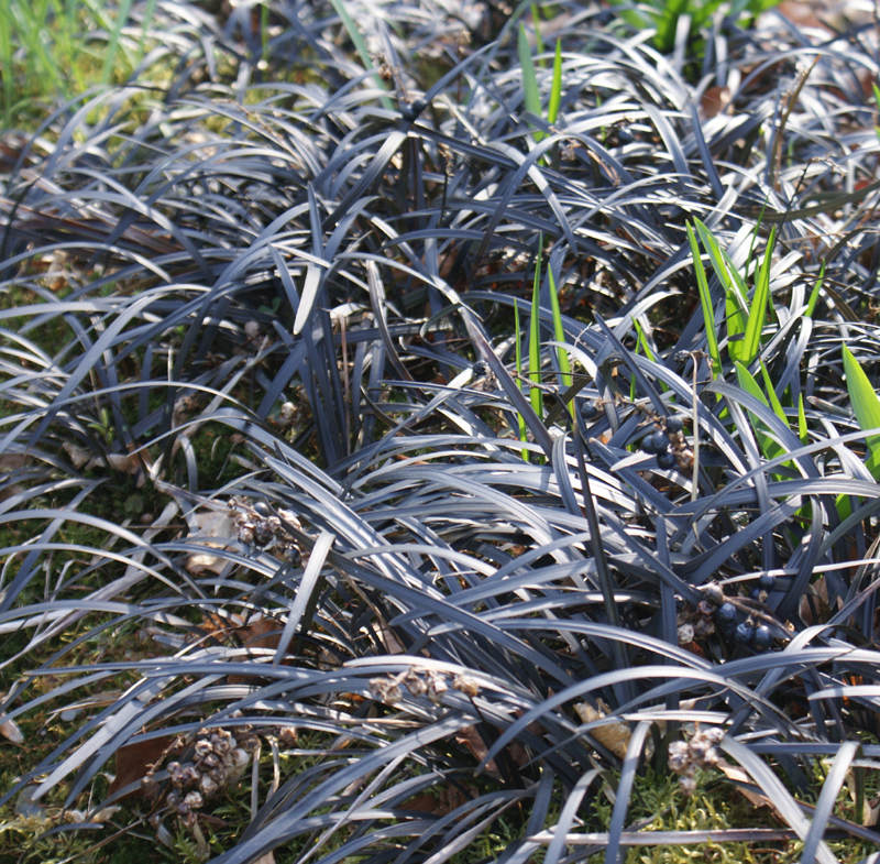 Liebhaberpflanze für asiatische Blattschmuckpflanzungen, schwarze, immergrüne, grasartige Blätter, für locker-humose, lehmige Böden, evtl. Schutz vor Wintersonne