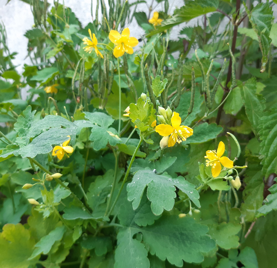 Das heimische Schöllkraut ist eine Heilpflanze, die ab Mai ihre dottergelben Blüten öffnet und bis zum Herbst blüht. Mit dem gelben Milchsaft, der austritt wenn man Pflanzenteile abknickt oder schneidet, können Warzen behandelt werden. Der volkstümliche Name Warzenkraut weist darauf hin. Dieses anspruchslose Gewächs versamt sich an zusagenden Stellen. Die Samen werden gerne von Ameisen verbreitet. Chelidonium majus (Schöllkraut) bevorzugt einen sonnig bis halbschattigen Standort auf trocken bis frischen Böden. Die Pflanze ist ein Stickstoffzeiger und ist giftig.