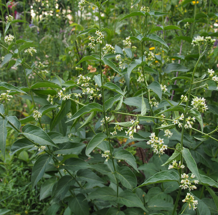 Vincetoxicum hirundinaria, die Schwalbenwurz ist eine heimische Pflanze, die neben den kleinen weißen Blüten und saftiggrünen lanzettlichen Blätten, vor allem durch ihre flaumigen Samenstände auffällt. Sie ist als Tiefwurzler sehr trockenheitsverträglich und meist auf mageren Standorten und an Gehölzrändern zu finden. Giftig!