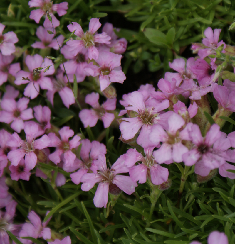niedriges Seifenkraut, blüht meist in den Randbereichen, für durchlässige, sandig-steinige Böden