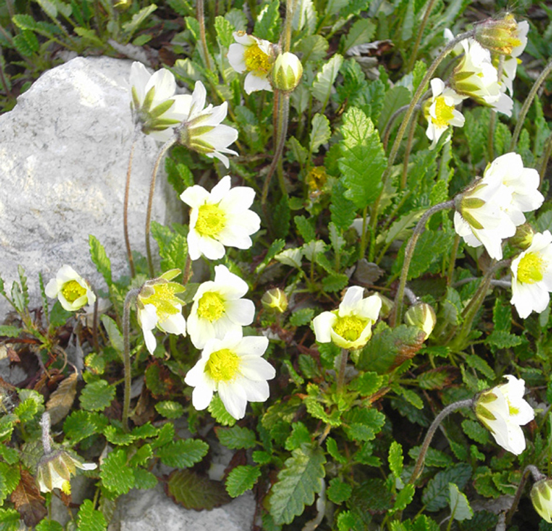 Garten-Silberwurz / starkwüchsiger Bodendecker für Mauern und Steinanlagen, hübsche Anemonenblüten, attraktive Samenstände, für kalkhaltige, schottrig-humose Böden