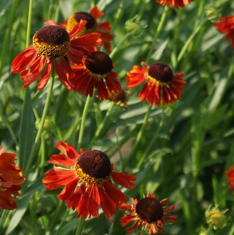 niedrige, früh blühende Sorte, Helenium sind sehr gute Schnittstauden, beliebte Bienenweide, Rückschnitt nach der Blüte fördert die Vitalität, möglichst nach 4-5 Jahren aufnehmen und teilen, für lehmige oder lehmig-humose, nährstoffreiche Böden