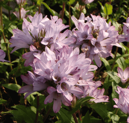 hellblaue Sorte der Dolden-Glockenblume, nach dem Rückschnitt remontierend, schön zu Strauch- oder Pfingstrosen 80-90cm * hellblau * VI-VIII * Sonne bis Halbschatten