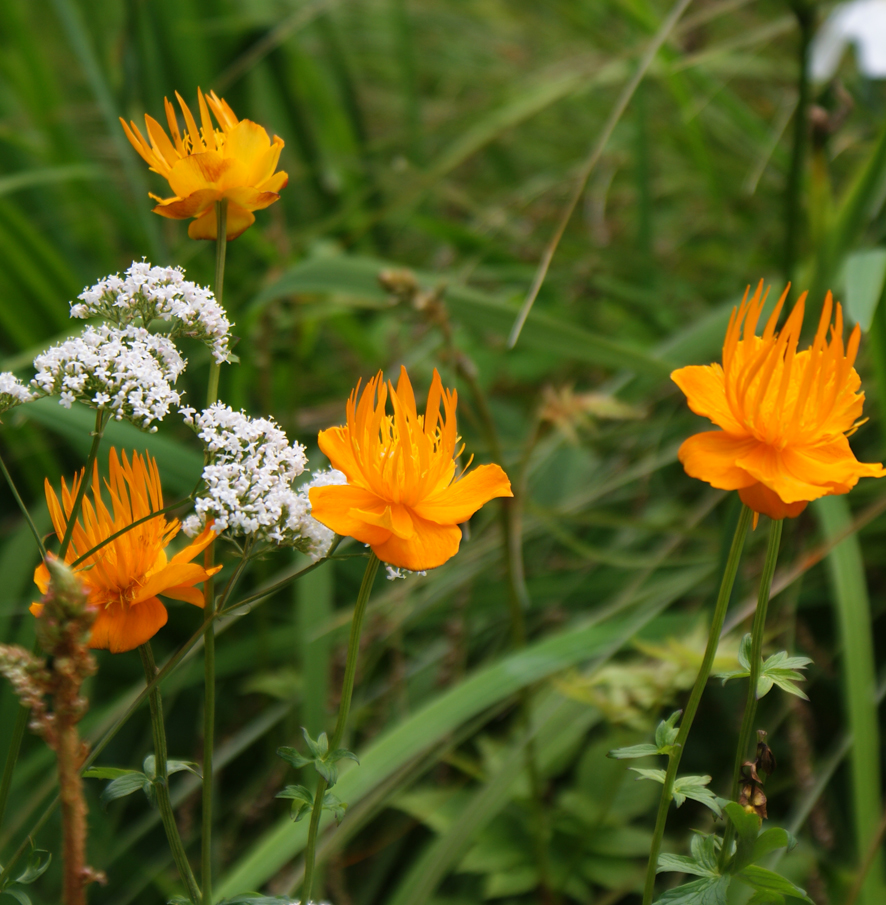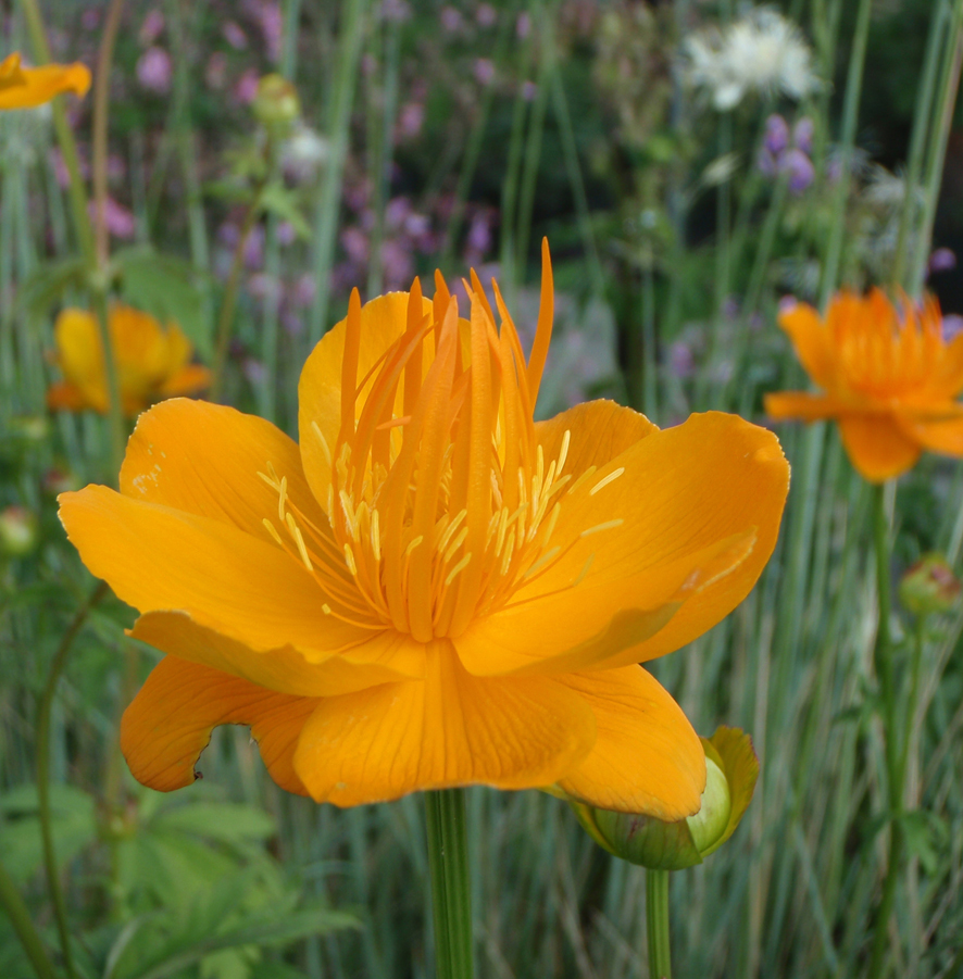 Trollius chinensis Golden Queen ist eine Sämlingssorte die auch unter Trollius Goldkönigin geführt wird. Sie ist eine hohe, spät blühende Sorte mit offenen Schalenblüten und aufstrebenden Staubgefäßen, remontiert selten und verlangt feucht- nährstoffreiche Böden.