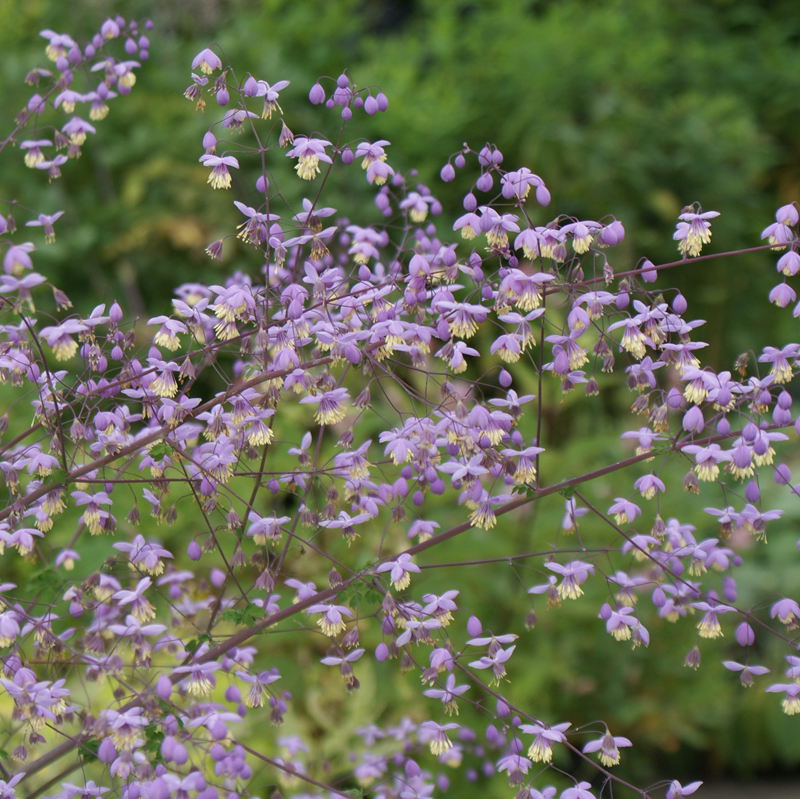 Thalictrum delavayi ist hochwüchsig, mit stark verzweigtem, lockerem Blütenstand, duftig wie eine Wolke aus kleinen, kugeligen Einzelblüten, sehr zierendes, fein gefiedertes Laub, evtl. zur Blütezeit stäben, für kühle, lehmig-humose, relativ nährstoffreiche Böden