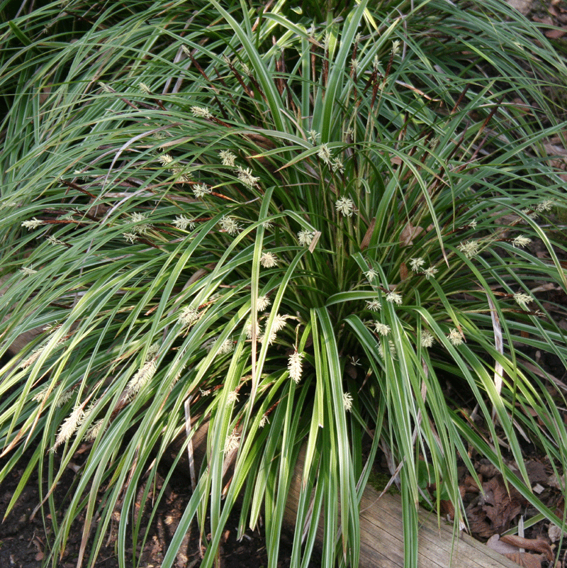 sehr elegant wirkende Art mit schmalen, überhängenden Blättern, horstig wachsend, immergrün und buschig, in sonniger Lage auf frischen Boden oder in halbschattiger Lage kann es auch etwas trocker stehen